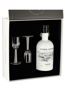 Zestaw prezentowy z alkoholem Czysta Odwaga wódka ziemniaczana 700 ml + 2 kieliszki w eleganckim pudełku